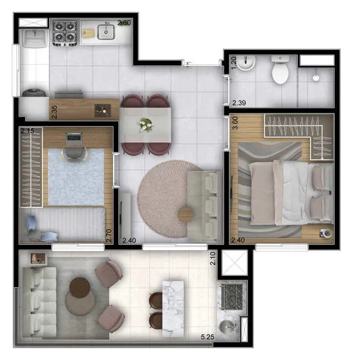 | Apartamento | 49.05 | 2 | 0 | 0 | R$ 382.136 |